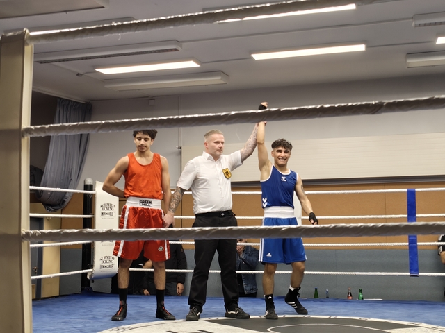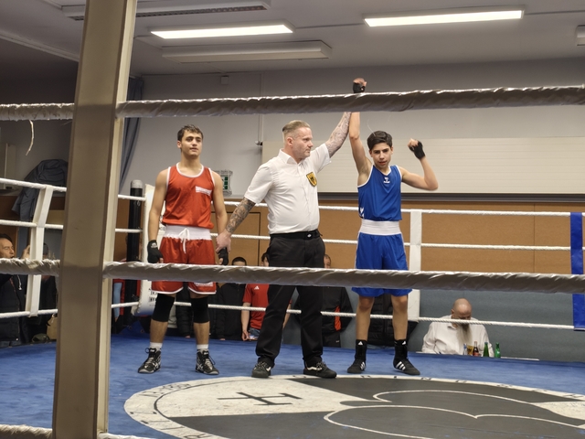 Den Anfang machte Semih Yilmaz im Bantamgewicht. Die erste Runde verlief alles andere als ideal: Yilmaz wurde von Kenan Ali aus Schwerte überrascht, musste einige vermeidbare Treffer einstecken und wirkte zunächst, von der unorthodoxen Kampfesweise des Schwerters überrascht. Doch genau in solchen Momenten zeigt sich der Charakter eines Boxers. In der Pause zur zweiten Runde griff Trainer Gerdesmann entschieden ein. Mit klaren Worten und einer präzisen taktischen Umstellung gab er Yilmaz den Impuls, den der Kampf brauchte. Und Yilmaz reagierte beeindruckend: Sichtlich fokussiert kehrte er in den Ring zurück, übernahm sofort das Kommando und bestimmte von da an jede Sekunde des Gefechts. Mit feiner Technik, entschlossener Beinarbeit und ruhiger Härte sicherte er sich einen deutlichen Punktsieg – ein Sieg, der verdienter Applauswellen aus dem Publikum hervorrief.