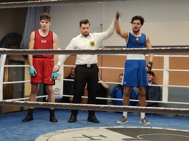 Ganz anders machte es Gabriel Zgraja. Nach dem Motto weniger ist mehr boxte er seinen Gegner, Remscheids Lokalhalbschwergewichtler Ahmad Aboalezam, ausschließlich aus der langen Distanz und fast ausschließlich mit der Führhandgeraden. Dieser Auftritt war derart dominant, dass der Remscheider fast alle Stöße und Schläge ins Nirgendwo setzte. Alle Aktionen von Ahmad wurden durch Gabriels Führhandgeraden derart heftig gestoppt, dass der Remscheider ein ums andere Mal am wackeln war. An dieser klaren und technisch auch schönen Wettkampfgestaltung, konnten auch die Kampfrichter nicht vorbei. Somit erhielt Gabriel Gold und Remscheid erlitt die einzige Niederlage an diesem Kampftag.