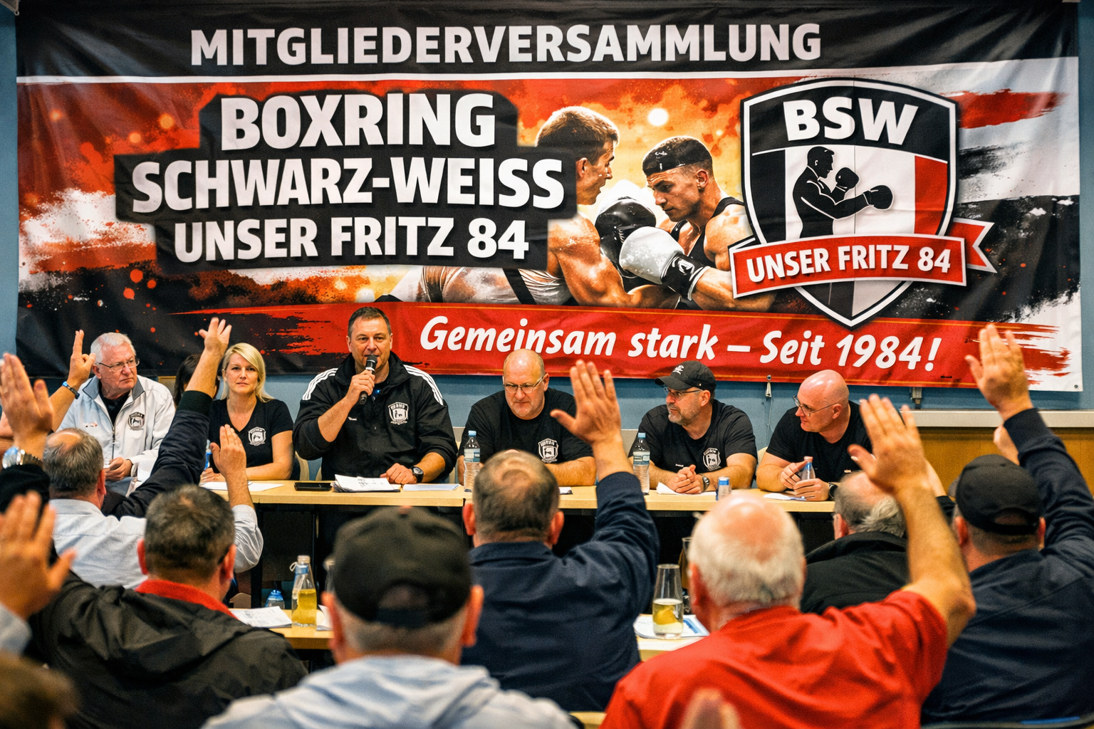 Der Boxring Schwarz-Weiß Unser Fritz 1984 e.V. blickt mit Stolz auf eine kontinuierliche und zukunftsorientierte Entwicklung seines Vorstands. In den vergangenen Jahren ist es dem Verein immer wieder gelungen, erfahrene Mitglieder mit neuen, engagierten Kräften zu verbinden – ein Zeichen lebendiger Vereinsarbeit und gelebter Gemeinschaft.